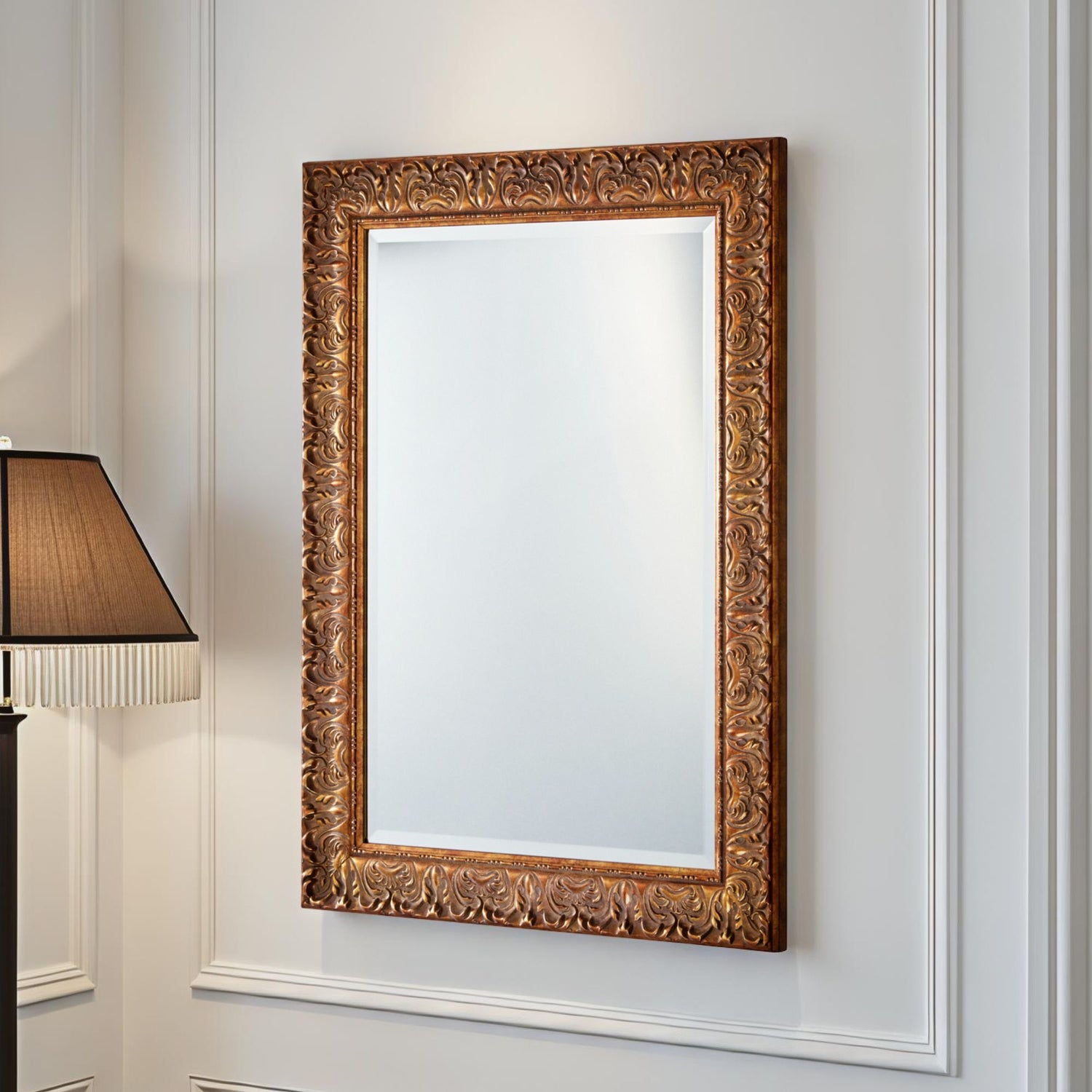 Transform your space with our elegant aged gold framed mirror, a perfect blend of style and functionality. This stunning piece is designed to enhance any room, whether it's your living area, bedroom, or hallway. The carved gold frame adds a touch of modern sophistication, while its versatile design complements a variety of decor styles, from contemporary to classic. This mirror not only serves as a practical tool for your daily routines but also acts as a striking focal point that reflects light and creates the illusion of a larger space. Easy to mount and maintain, it’s the ideal addition to elevate your home’s aesthetic. Embrace the beauty and utility of this exquisite mirror and make it a centerpiece in your home today!