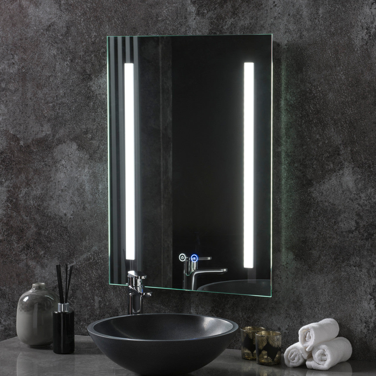 The Vance illuminated LED bathroom mirror is the perfect mirror for any bathroom. The mirror is fitted with a touch sensor that enables two tone lighting offering warm and bright light depending on your mood!